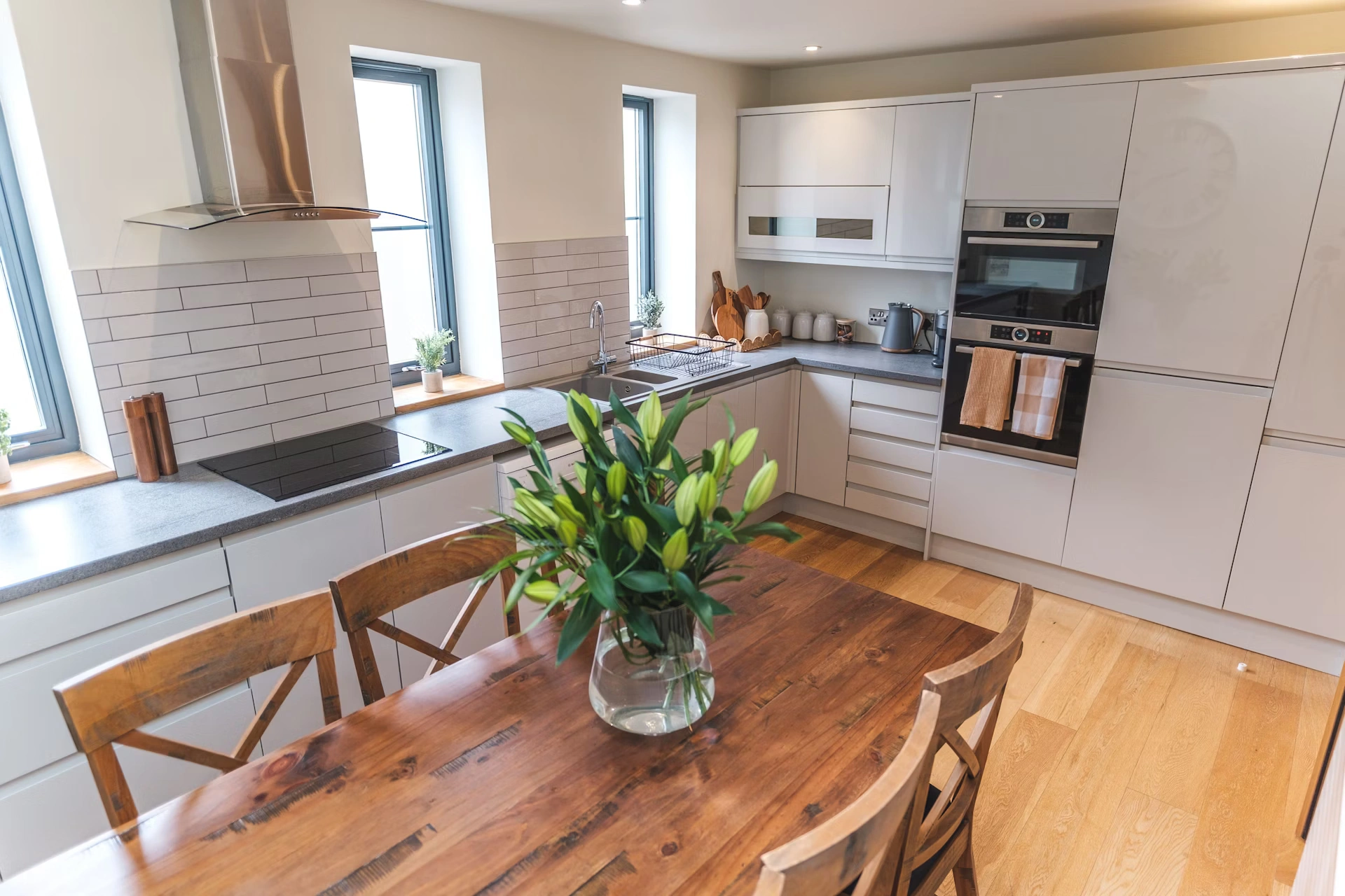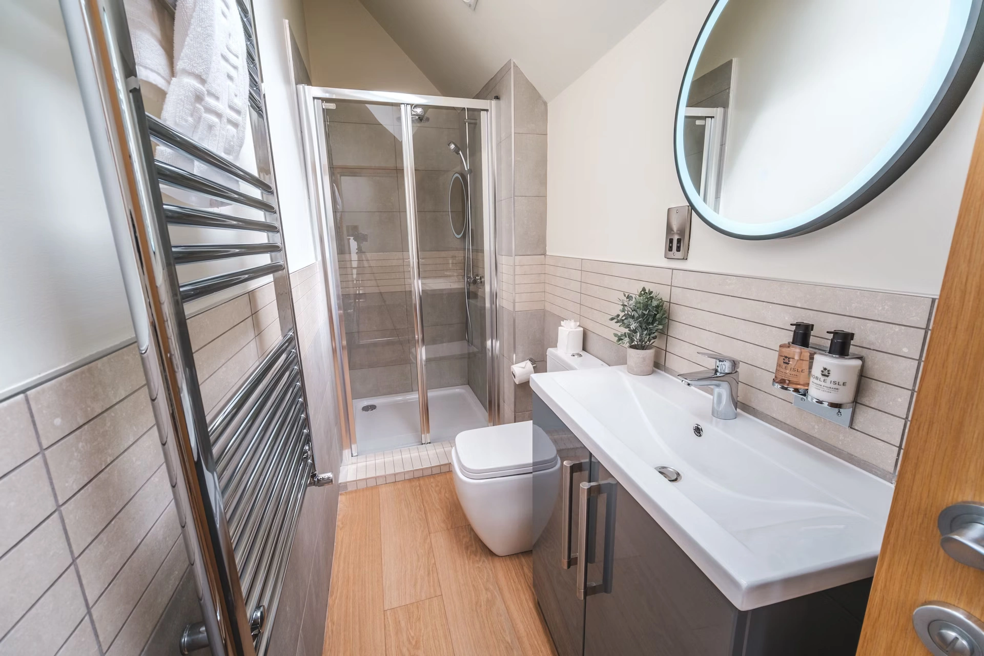 Our apartment features 3 Superking size bedrooms and 2 bathrooms with a bath and walk in shower.