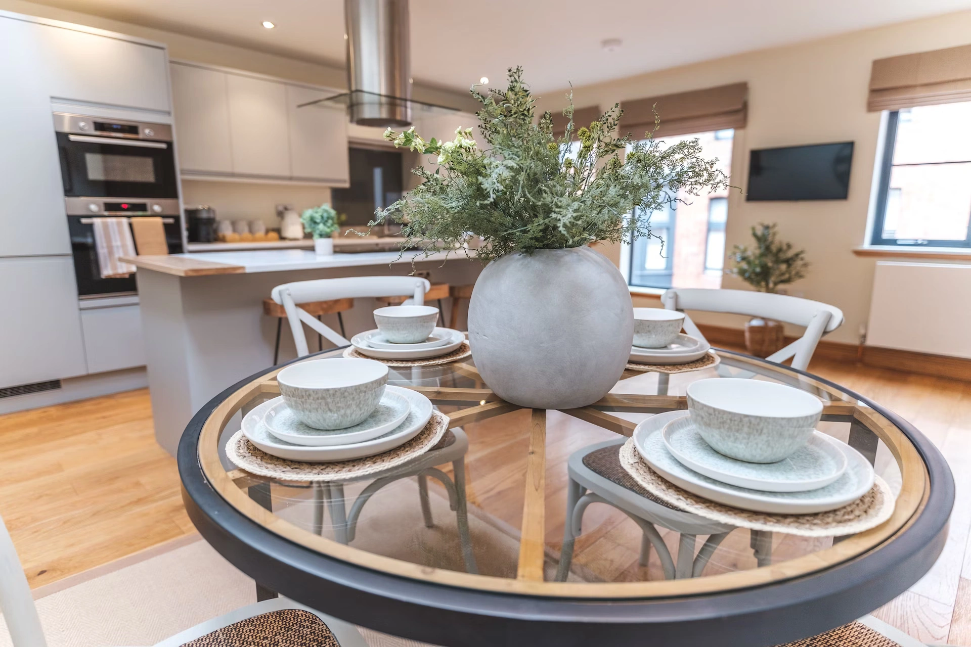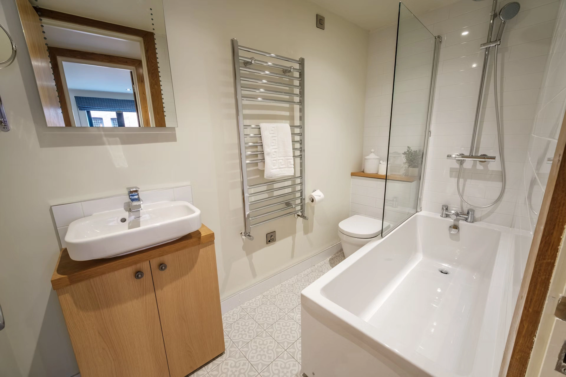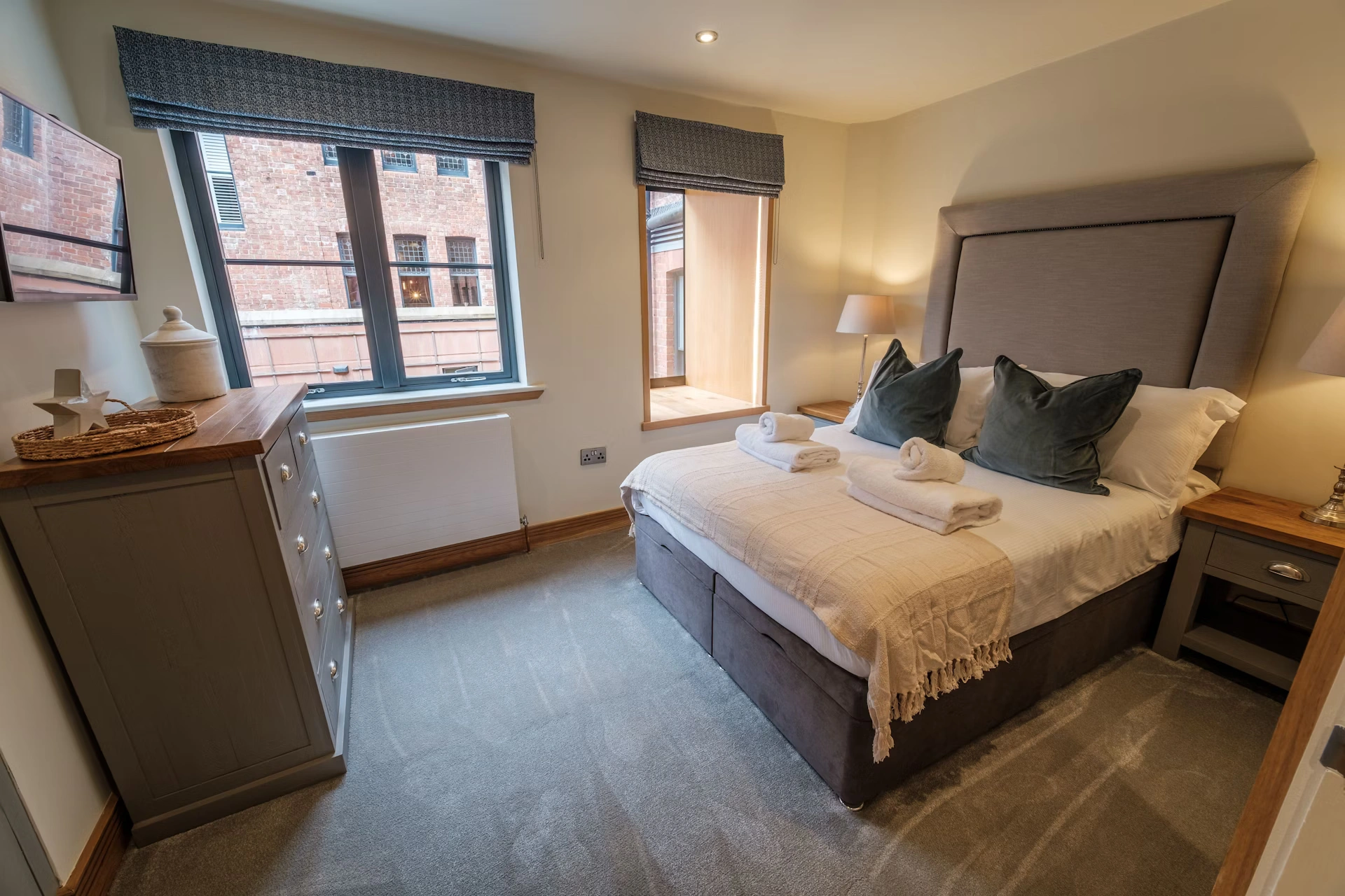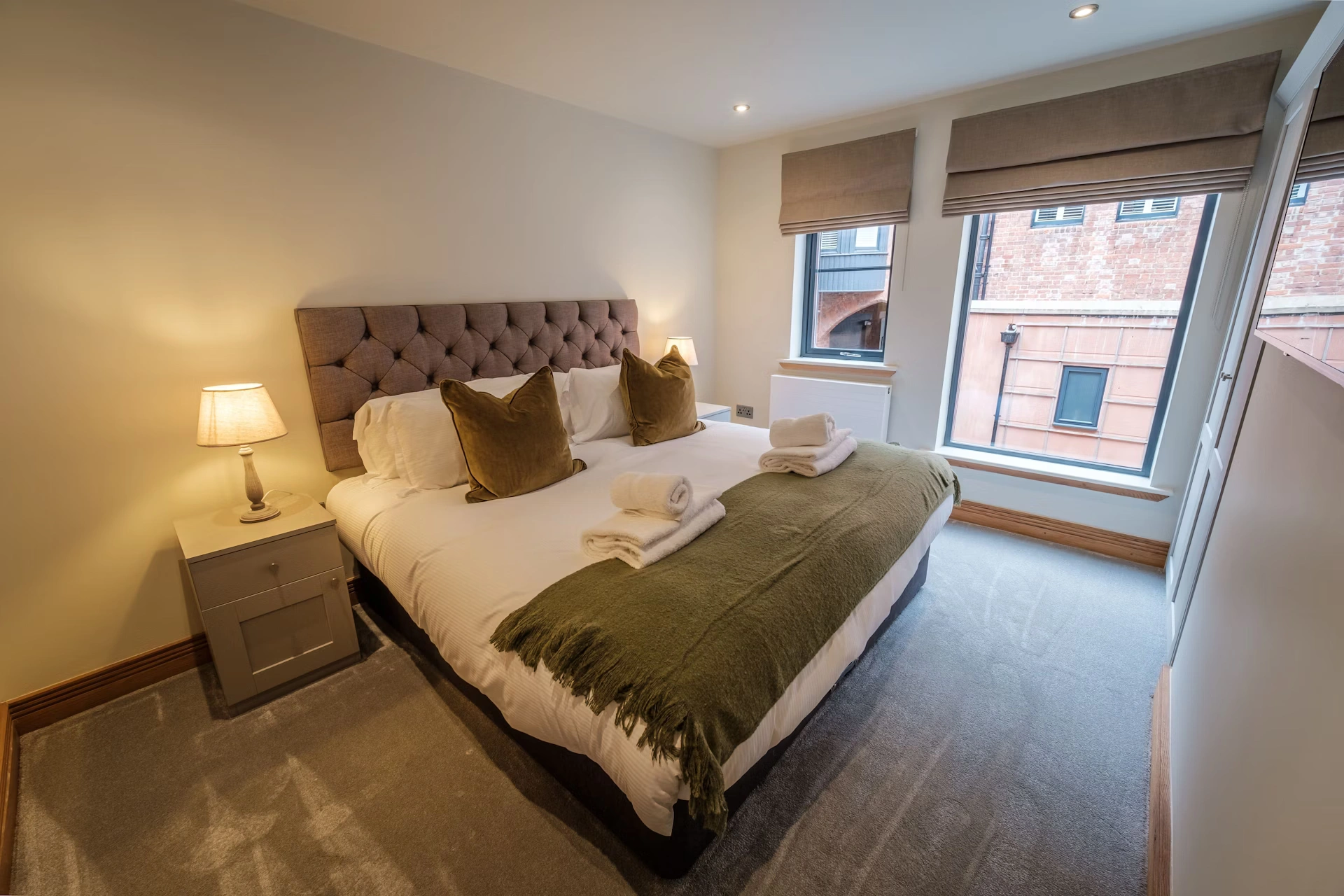 Our apartment features 2 Superking size bedrooms and 2 bathrooms with a bath and walk in shower.